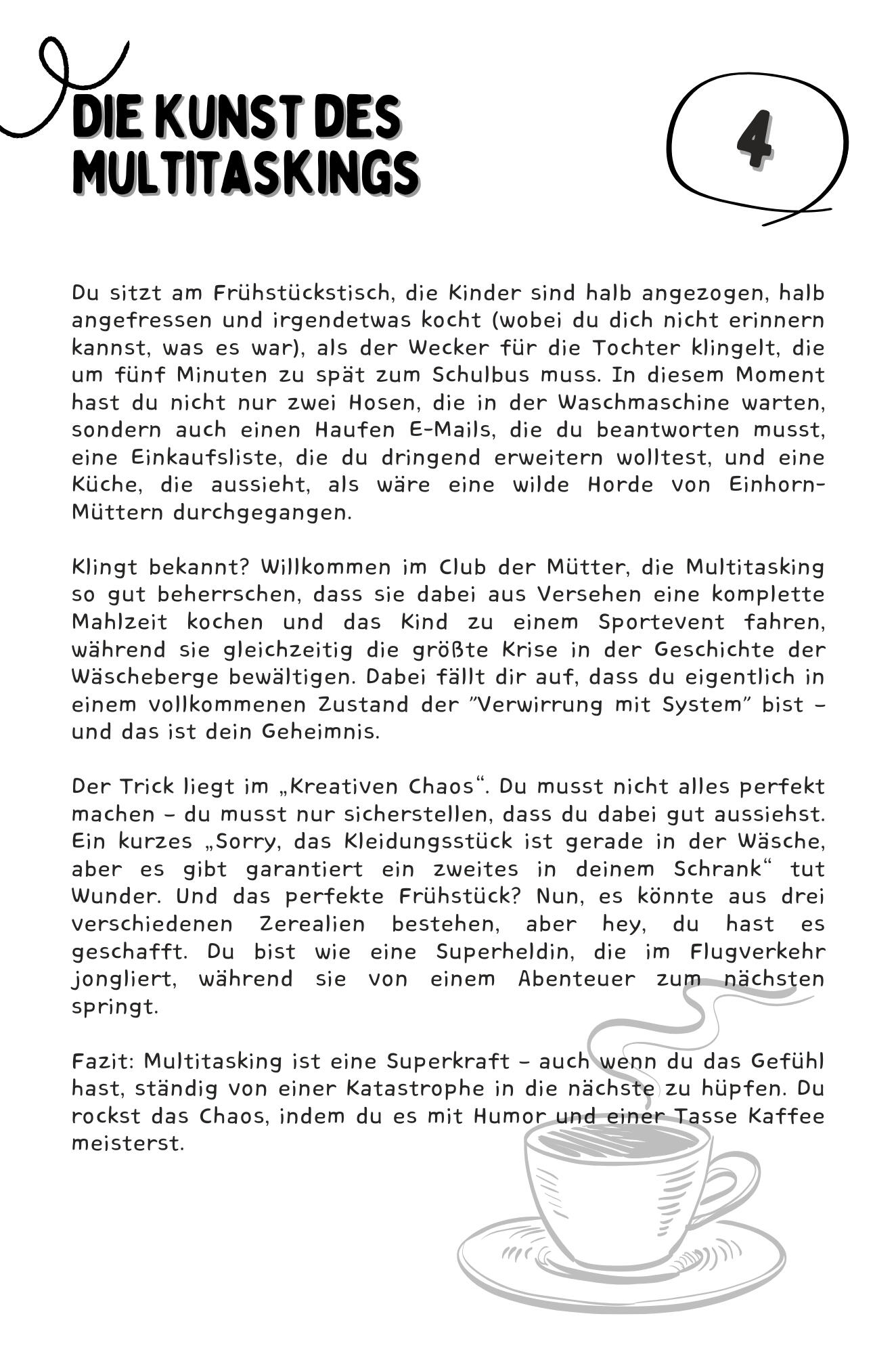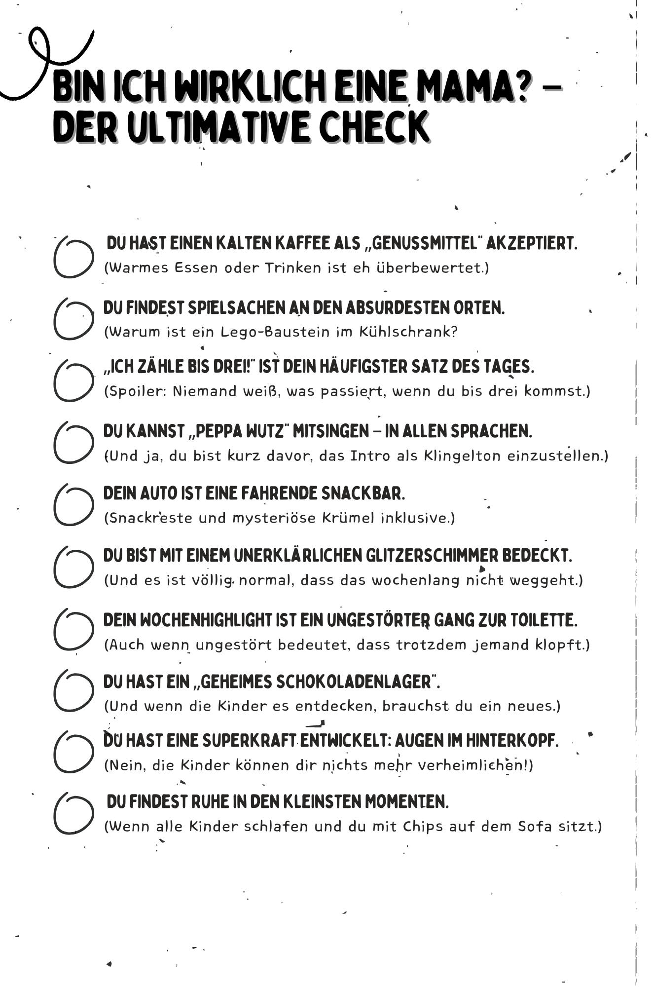 Kurze, freche Tipps, die zeigen: Du bist nicht allein – und Humor rettet jeden Tag. Ein perfektes Geschenk für Mamas, die mehr lachen wollen.